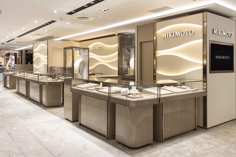 MIKIMOTO的130週年,也正式进驻忠孝商圈,于台北远东SOGO忠孝馆四楼全新开幕。而全新概念店展现品牌的雅緻品味,进入MIKIMOTO独有的和谐典雅氛围,一个以海洋为背景的故事就此展开;品牌LOGO主墙面,以波浪的线条倾诉对于海洋的爱,光脉在波浪线条中闪烁着,展现出灵动起伏、堆叠生动的美感,设计富有层次,也真实呈现孕育珍珠的优美意境,波光粼粼海面彷彿就在眼前。