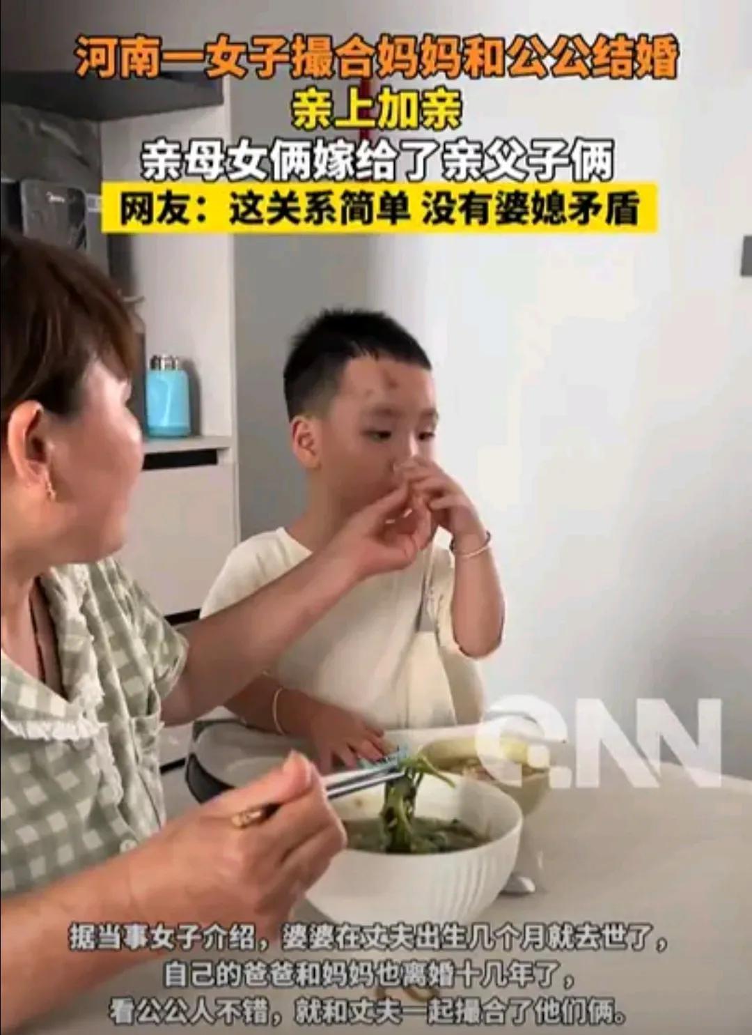 这样一来,女子的妈妈嫁给了公公,两家合成了一家,关系变得更简单,称呼也不乱套。一家人过得特别开心,没有婆媳矛盾,反而多了很多理解和温暖。女子看到爸妈这么幸福,心里也安稳多了。这段“亲上加亲”的婚姻,让家里人关系更亲、心里更暖。有人觉得这样辈分有点乱,但也有人夸这办法既聪明又贴心。只要老人们过得开心,家里和和气气的,这不就是帮了大家一个大忙嘛!