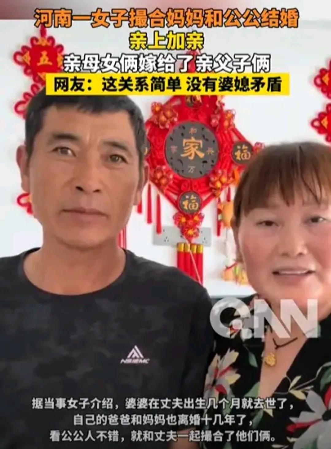 “太幸福了!”河南周口,一女子结婚后,发现公公人不错,就和老公商量,撮合自己的单身妈妈和单身公公结婚,没想到最后竟成了,两老人也乐意,亲母女俩嫁给了亲父子俩,亲上加亲,一家人其乐融融,女子也没有婆媳矛盾了!