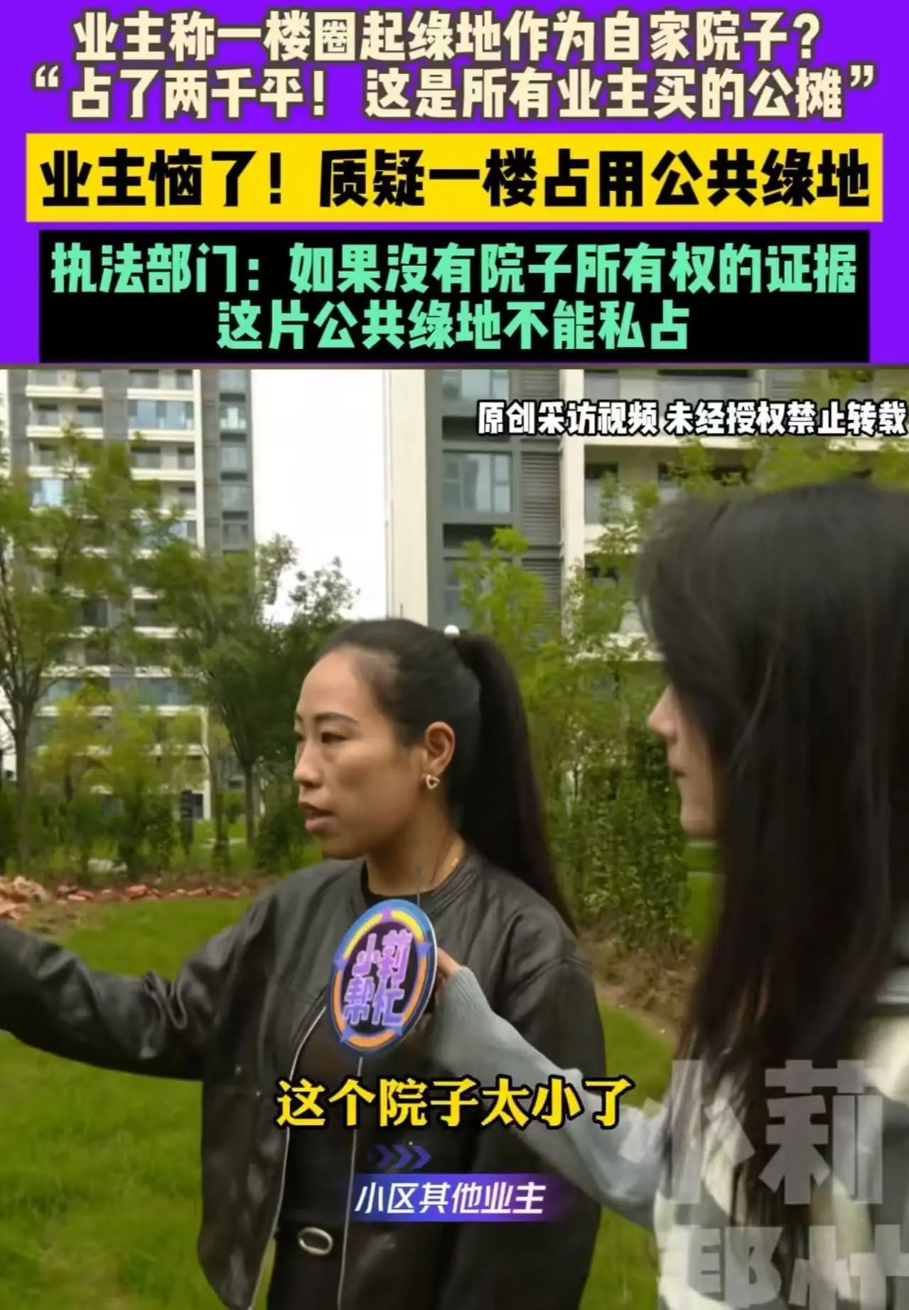 网友们的评论也五花八门。有些人站在一楼业主一边:“想多花钱买一楼,又羡慕人家有这么大的院子,难道不是自己当初的选择吗?”他们似乎在说:“既然你愿意出高价,享受专属空间,那就要承担相应的责任和后果。”而另一部分网友则表达了不同的观点:“公共绿地是公共的,不能让个人随意占用。开发商承诺的‘送院子’也得有界限,否则社会怎么运转?”